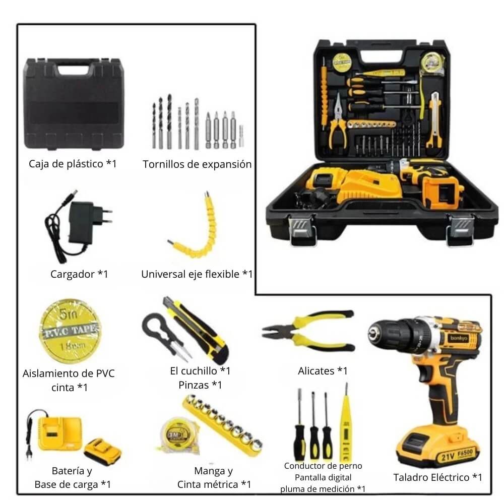Este kit completo es ideal para profesionales, técnicos y amantes del bricolaje que buscan rendimiento, movilidad y eficiencia en una sola herramienta.